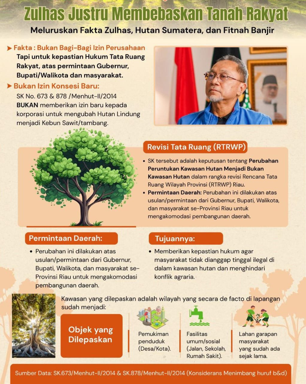 “Zulhas tidak pernah menerbitkan izin baru untuk perusahaan dalam SK tersebut. Yang dilakukan adalah menata ulang tata ruang supaya selaras dengan perkembangan wilayah dan kebutuhan warga,” tambah Iwang.