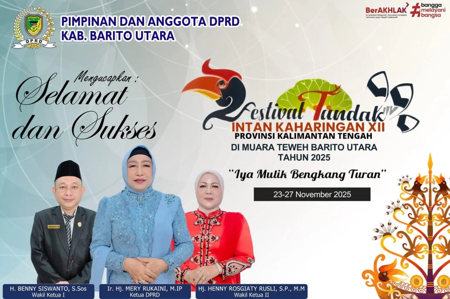 “Melalui festival ini, kita berharap generasi muda semakin mencintai warisan leluhur dan terus menjaga identitas budaya daerah. Semoga Festival Tandak Intan Kaharingan XII berjalan lancar dan sukses,” ujar jajaran Pimpinan DPRD Barito Utara.